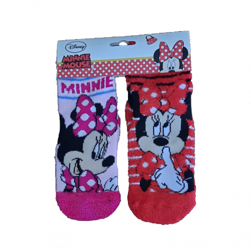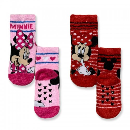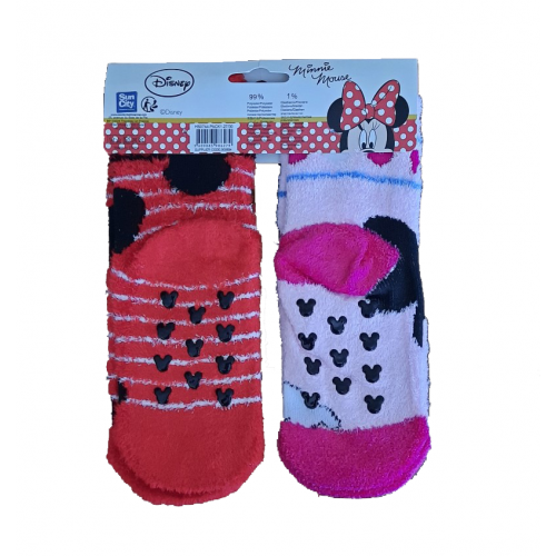 E’ un Set 2 paia di calzini Disney con stampo Minnie realizzato in morbido tessuto a pelo lungo con gommine abs antiscivolo sulla pianta dei piede.