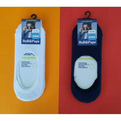 E' un gruppo di salvapiedi da bambino/a in cotone elasticizzato con al loro interno una protezione antiscivolo in silicone anallergico.
