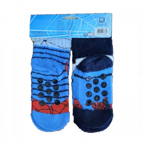 E’ un Set 2 paia di calzini Marvel con stampo Spiderman realizzato in morbido tessuto a pelo lungo con gommine abs antiscivolo sulla pianta dei piede.