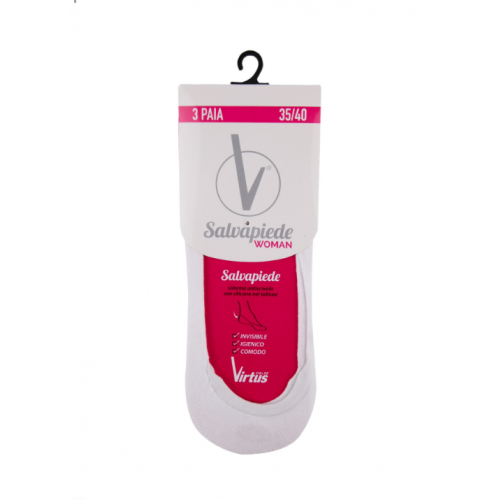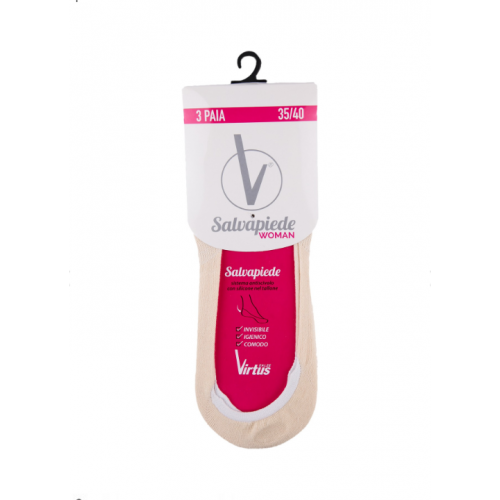 " Virtus ART.V166 " è una Soletta (Salvapiede) igienica realizzato in cotone elasticizzato con all'interno un punto siliconato sul tallone per impedire lo scivolamento della stessa all'interno della scarpa. Questa Soletta e adatto per tutti i tipi di calzature ( es.Mocassini ), ed è particolarmente utile per evitare il proliferarsi di funghi, batteri e micosi che possono infettare nei mesi estivi i nostri piedi per via del caldo se utilizziamo le scarpe senza calze.