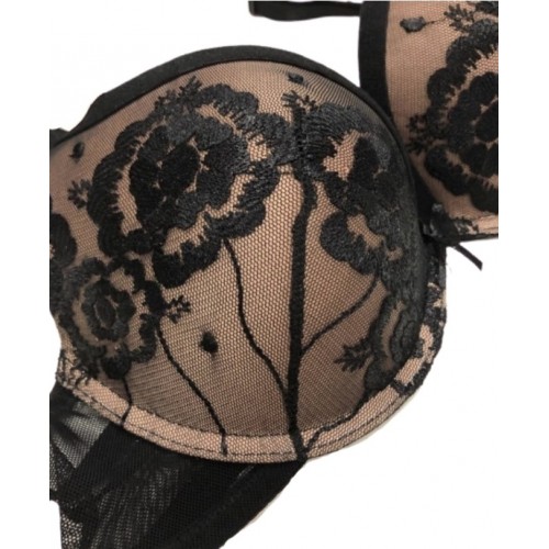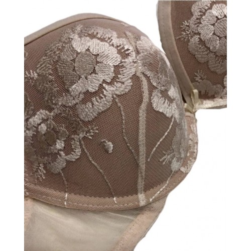Arricchito da ricamo floreale sulle coppe.