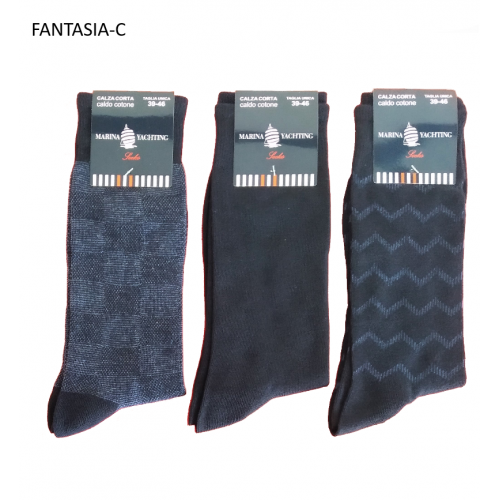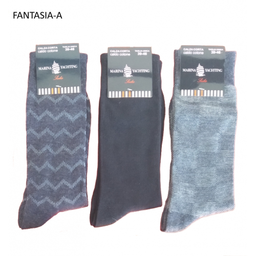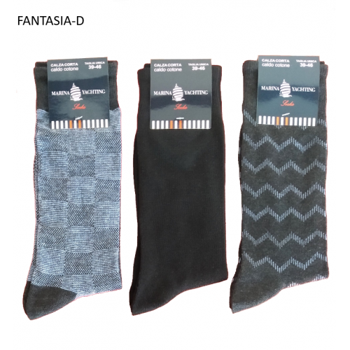 Sono un gruppo di calze corte meta polpaccio da uomo in caldo cotone a fantasie assortite.