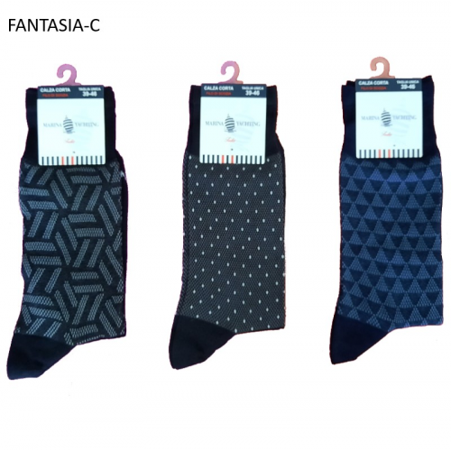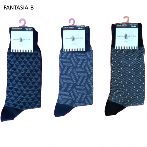 Sono un gruppo di calze corte meta polpaccio da uomo in cotone filo di scozia a fantasie geometriche assortite.