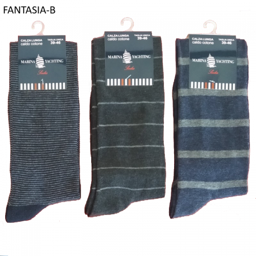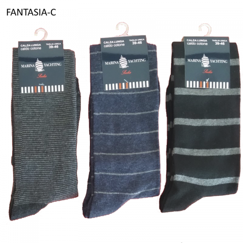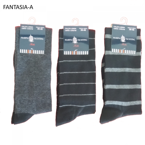 Sono un gruppo di calze lunghe alto polpaccio da uomo in caldo cotone a fantasie assortite.