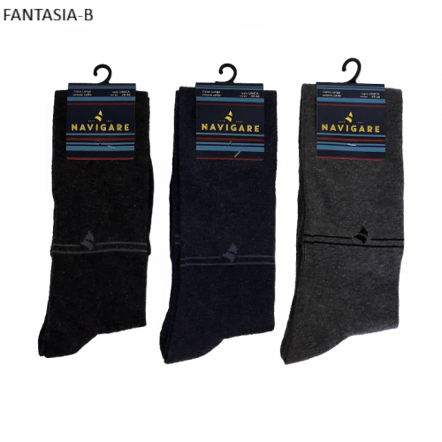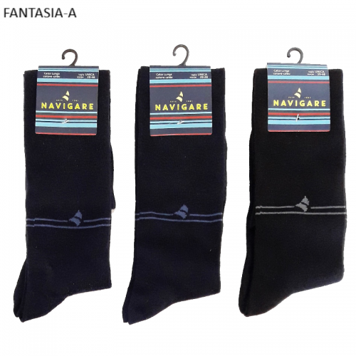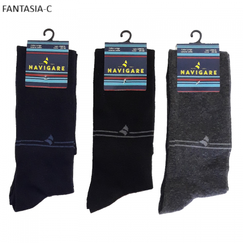 " Navigare ART.E12011 " sono un gruppo di calze lunghe alto polpaccio da uomo in caldo cotone a tinta unica assortite di colori. Queste calze sono prodotte con filati di cotone di altissima qualità, caratterizzate dal loro elastico svoltato internamente morbido e resistente. Sono molto pratiche da indossare e danno un senso di confort al piede il quale viene tenuto caldo nelle stagioni rigide e fredde.
