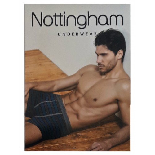 " Nottingham Art.17010-AS " Sono un gruppo di Boxer Uomo con elastico esterna alla vita in cotone bielastico. Questo capo è realizzato con filati di cotone di ottima qualità, che lo rendono fresco e morbidi al contatto con la pelle. Caratterizzato dalla sua mordissima elastico esterna, dalla sua mezza penza sul davanti e dal suo tassello interno in cotone per salvaguardare l' igiene intima.