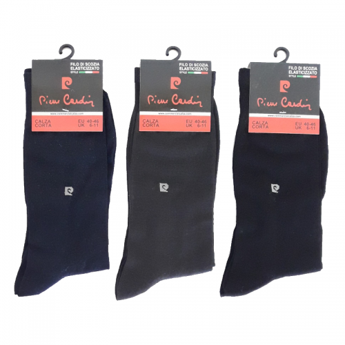 " Pierre Cardin ART.PC Easy" è una Calza media a metà polpaccio per uomo, il quale è caratterizzato dal un piccolossimo logo a forma di "P" a meta calza che simboleggiare il marchio Pierre Cardin e dalla sua scritta per intero sulla pianta del piede. Questa calza è in cotone filo di scozia elasticizzato, che combia la frescezza del cotone filo di scozia con l'elasticità del suo tessuto che lo rende sagomato al piede.